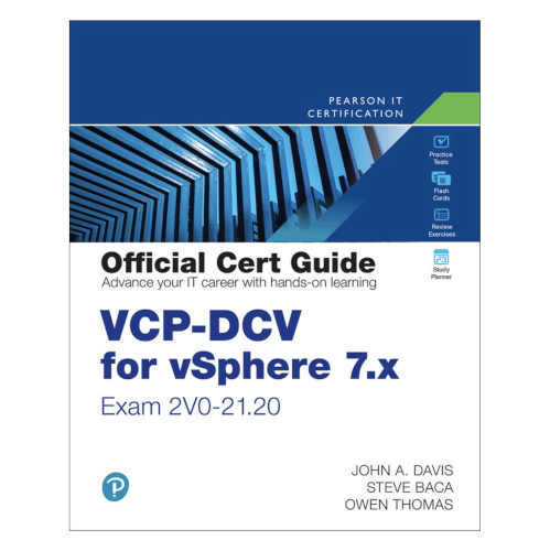 VCP-DCV for vSphere 7.x (Exam 2V0-21.20) Official Cert Guide from Pearson IT Certification allows you to succeed on the VMware Certified Professional - Data Center Virtualization for vSphere 7 exam (Professional VMware vSphere 7.x exam) by directly addressing the exams objectives as stated by VMware. Leading experts John A. Davis, Steve Baca, and Owen Thomas share preparation hints andtest-taking tips, helping you identify areas of weakness and improve both your conceptual knowledge and hands-on skills.